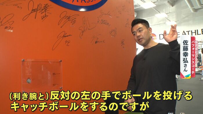 自分の体の状態を整えたりだとかするために、(利き手)反対の左の手でボールを投げるキャッチボールをするんですが、その時に大谷さんも誘われて、(ダルビッシュ投手と)一緒に利き手ではない方で、キャッチボールをした際にちょっと誤って、ボールを放ってしまって、穴が開いたと。