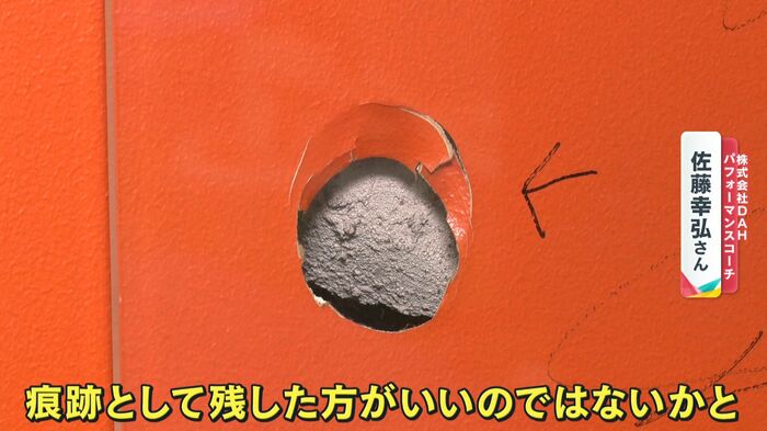 2015年、大谷選手とダルビッシュ投手が合同トレーニングを行った際に、開けてしまったという壁の“穴”。