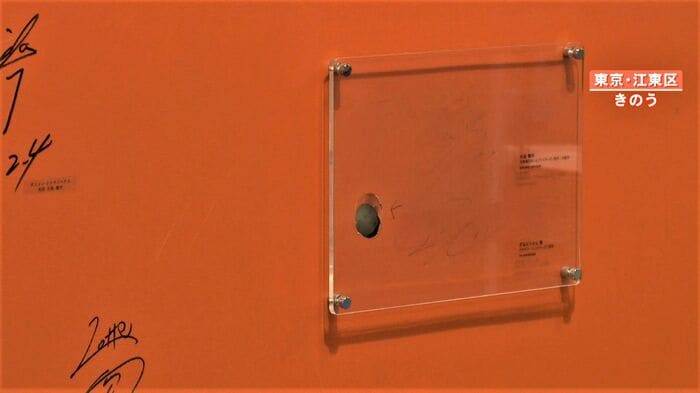 「穴開けてしまいましたどうしましょう」ということで、謝罪のようなものがあったんですけども、せっかくなのでこれを変えてしまうよりかは、痕跡として残した方がいいのではないかと。
