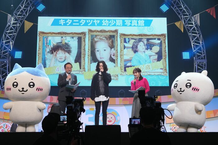 ライブが終わり、ステージには進行を務める三宅正治アナウンサーと藤本万梨乃アナウンサー、そして、ちいかわとハチワレが登場。「トップバッター盛り上がりましたね!」と興奮冷めやらぬ三宅アナと藤本アナ。かわいく揺れて興奮を伝える、ちいかわとハチワレ。