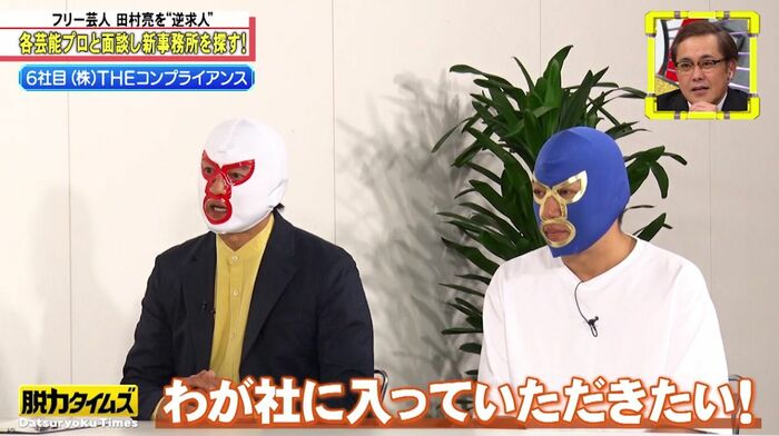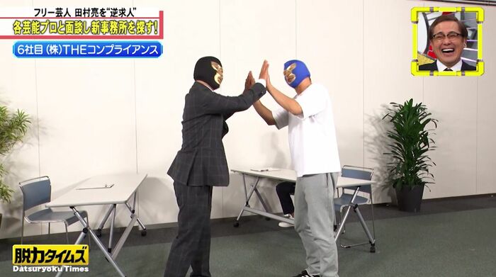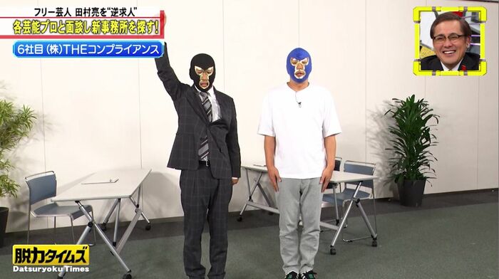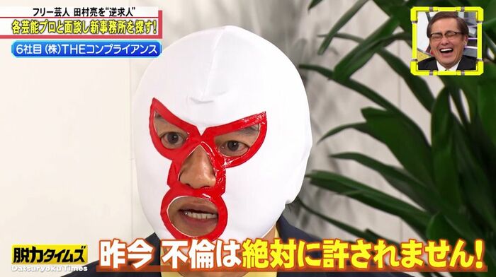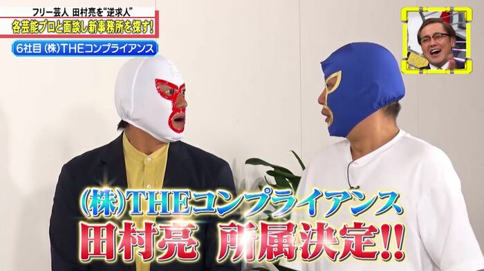 キャスターアリタから「さぁ、どちらに所属しますか?」と聞かれ、「どうだろうな……コンプライアンス!」と、とうとう(株)THEコンプライアンスへの所属を宣言!?
