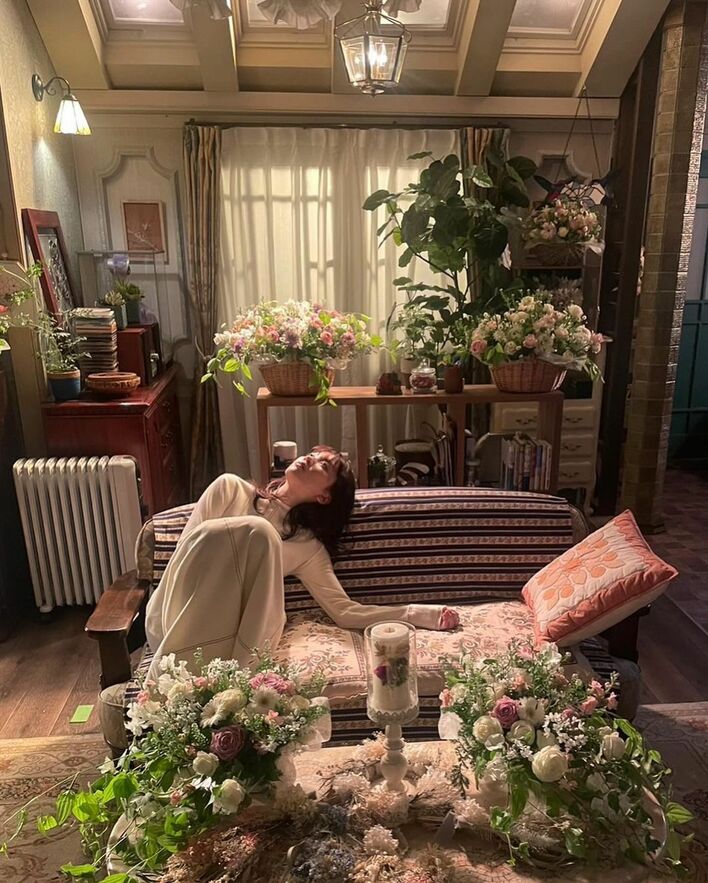 インスタグラムに投稿されたのは、撮影現場の階段で笑顔を見せたり、ソファーで上を向き物憂げな表情をしている永野さん。