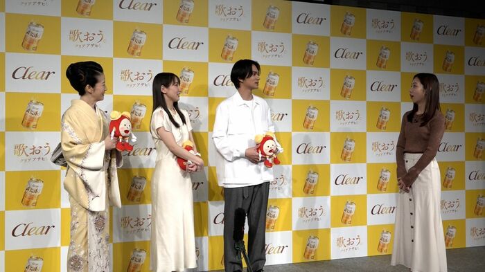坂本冬美さん、吉岡里帆さん、北村匠海さんが『クリアアサヒ 新コミュニケーション発表会』に出席。