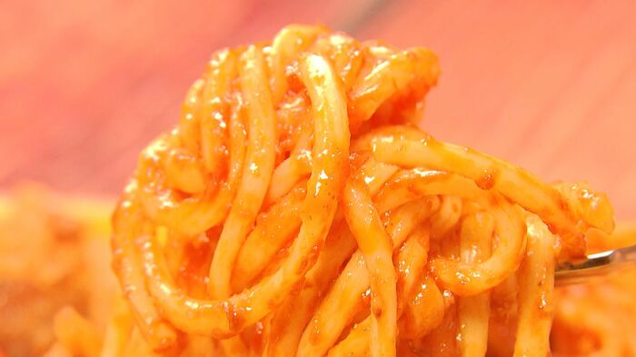 ナポリタンのソースは、ケチャップベースにお店オリジナルのブイヨンと長崎県産のトマトや白ワインで味付け。少し甘めの味わいです。