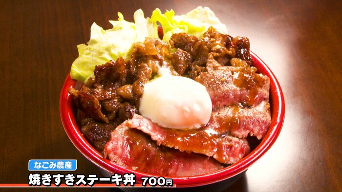 “焼きすき”の脂身とステーキの赤身、両方の旨味を一皿で味わえる、まさに究極のどんぶりです。