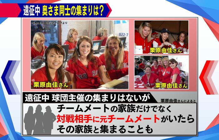 さらに遠征中は妻同士の集まりもあるといい、栗原さんによると球団主催の集まりはないが、チームメートの家族だけでなく、対戦相手に元チームメートがいたらその家族も集まることもあるといいます。
