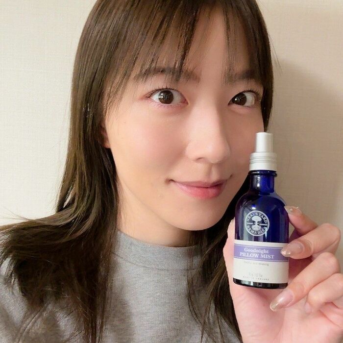 本当に眠りにつくのが遅いんです。ベッドに入ってからもドラマを見て気付いたら3時間経っている、みたいなこともあるのですが、ピローミストを使うと寝付きが良くなりました。フローラル系のいい香りで、気付いたら眠っています。朝が早いから、早く眠りにつきたい時は必ず使うようにしていますね。