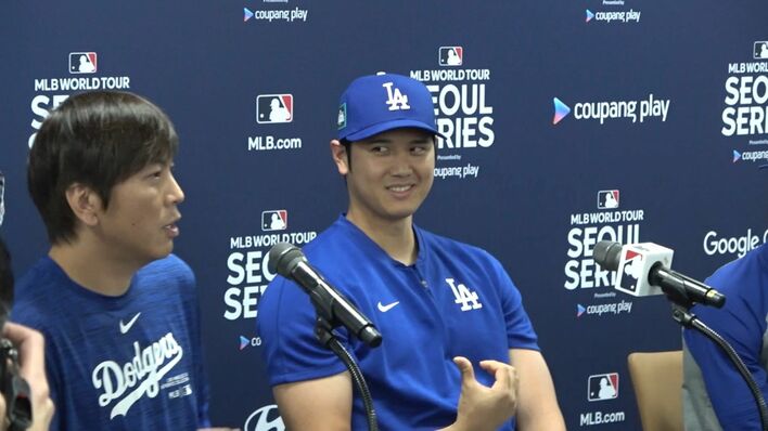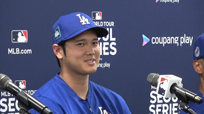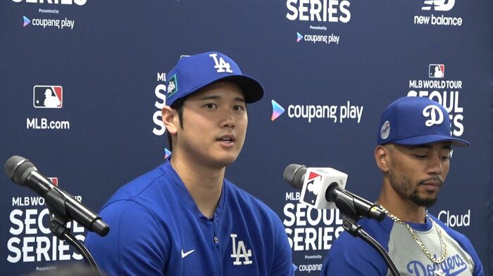 チームメートのフレディ・フリーマン選手と、ムーキー・ベッツ選手とともに試合への期待や、韓国に同行している妻・真美子さんについて語りました。