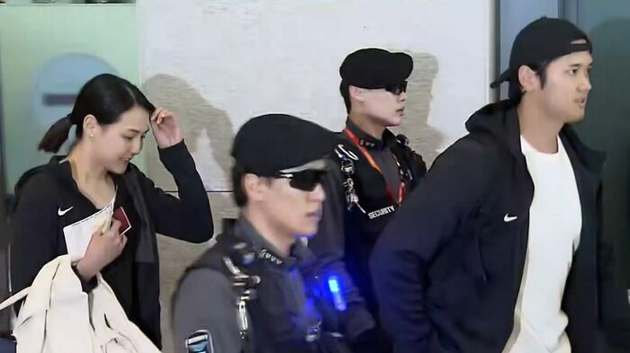 大谷翔平が韓国に到着 「妻」もファンの前に 大谷の少し後ろを歩く
