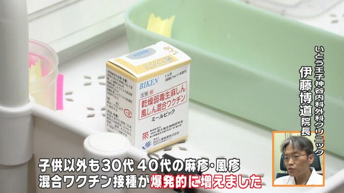 子ども以外も30代40代の麻疹風疹混合ワクチン接種が急増しており、ワクチンの入荷待ちをしている人も。