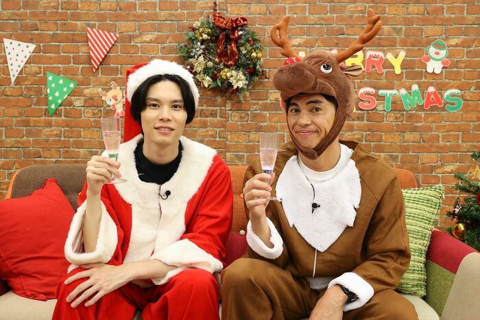 番組は、サンタ姿の萩原さんとトナカイ姿の小島さんの、「メリークリスマス!」という挨拶でスタート!シャンメリーで乾杯してすっかりクリスマス気分の中、小島さんは「クリスマスパーティでwkwk」と今回の企画を紹介します。