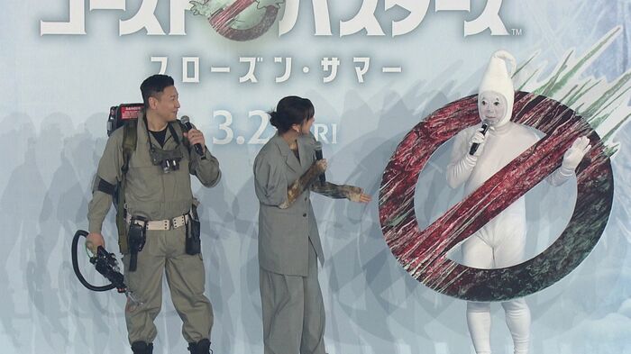松尾さんは、ゴーストバスターズのトレードマークのコスプレ姿で登場。