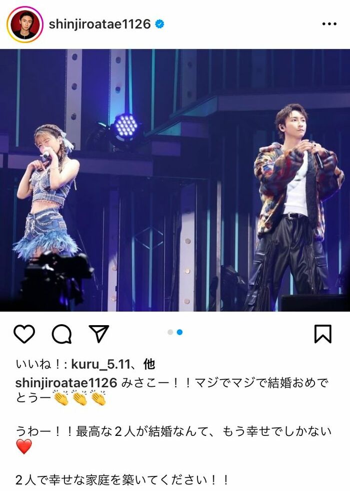 2024年3月13日に結婚を発表したNEWSの小山慶一郎さんとAAAの宇野実彩子さんを、AAAのメンバーである與真司郎さんが自身のSNSで祝福しました。