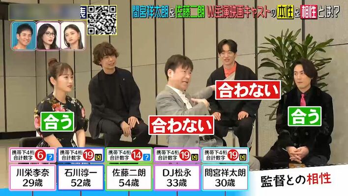 さらに、「松永さんと間宮さんは相性抜群。2人そろうと新しい何かが生まれる」という鑑定に、当の2人は「ドキッとしますね」(松永)、「意識しちゃう」(間宮)と、まんざらでもない様子。
