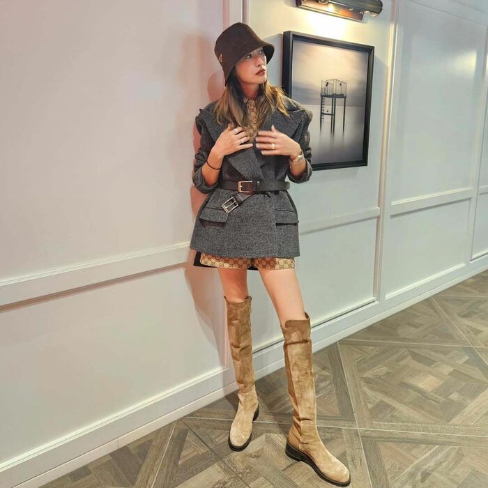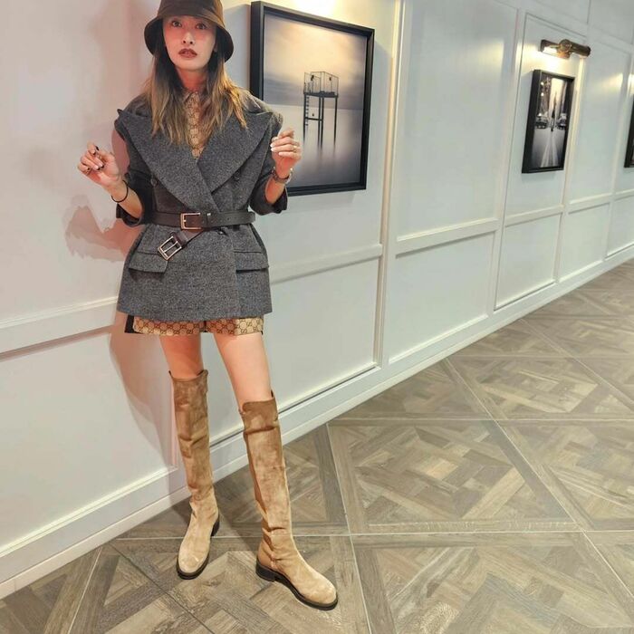 俳優の山田優さん(40)が2024年12月4日に自身のインスタグラムを更新。絶対領域あらわなミニ丈×ロングブーツ姿を披露しました。