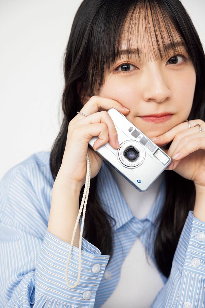 「いちばんの被写体は、近くにいるメンバーです。写真は⾃分で現像することもあります。フィルムで撮るとそのときはどんな写真かわからないから、できあがりを⾒るのがドキドキして楽しいです。メンバーの笑顔を⾒るのが幸せです」とメンバーとの仲良しエピソードを語りました。