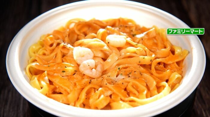 そんな『鎌倉パスタ』とファミリーマートのコラボ商品、まず1品目は、2月に発売された「【鎌倉パスタ 監修】生パスタ 海老のトマトクリームパスタ(550円)」。