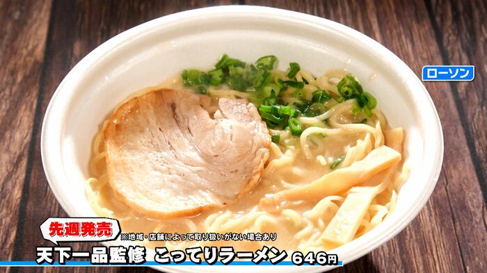 この春、ラーメンに力を入れているというローソンの注目『有名店“監修”グルメ』は、2月26日発売、人気ラーメンチェーン店『天下一品』の味を再現した「天下一品監修 こってりラーメン(646円)」。