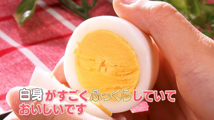 ゆで卵を食べた林キャスターは「白身がすごくふっくらしていておいしいです。15分で2つもできちゃうって画期的じゃないですか」と興味津々でした。