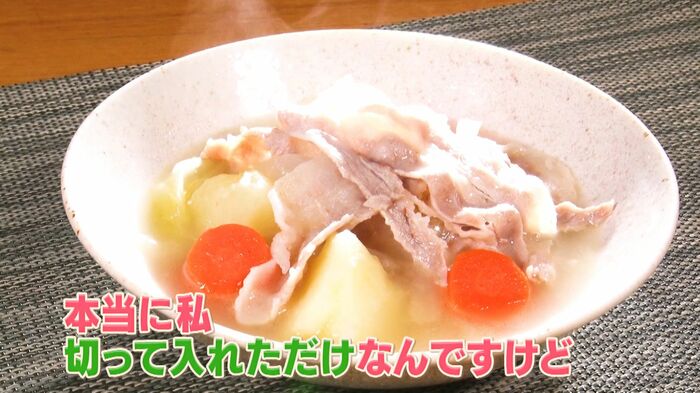 料理初心者の林キャスターでも、具材を切って容器に入れてスイッチを押すだけで本格的な肉じゃがを作ることができました。