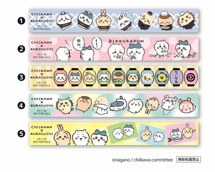 さらに、「ビッくらポン!®」を楽しむちいかわ、くら寿司の従業員になりきったキャラクターが描かれているマスキングテープなどもあります。