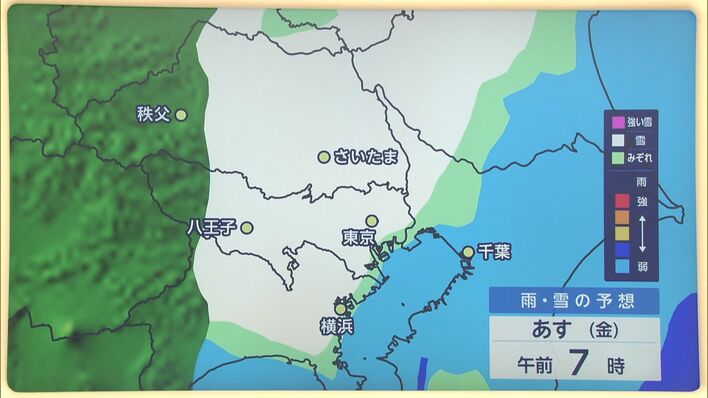 東京都心では午前7時ごろ雪がピークをむかえる予想で、