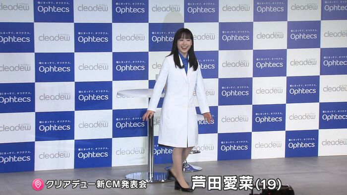 今回のCMで研究員を演じる芦田さんは、役衣装である白衣姿で登場。