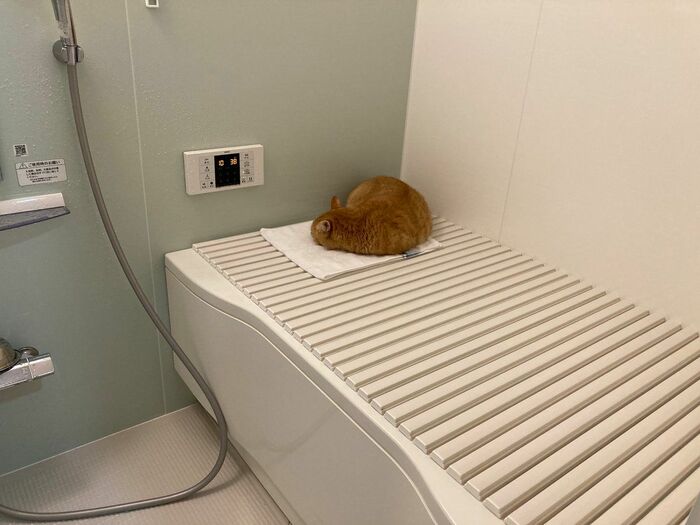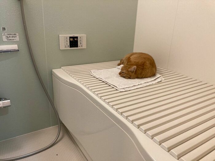 また、飼い主さんがお風呂に入っていても出て行くことはしないそう。湯船に浸かりながら、愛猫を眺める通称“猫見風呂”を堪能しているといいます。