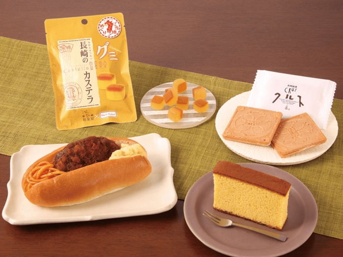 長崎・“和泉屋”とコラボしたカステラグミは弾力のあるキューブ型のグミの中に甘いジュレを入れ込むことで、カステラ風味のやさしい味わいに。
