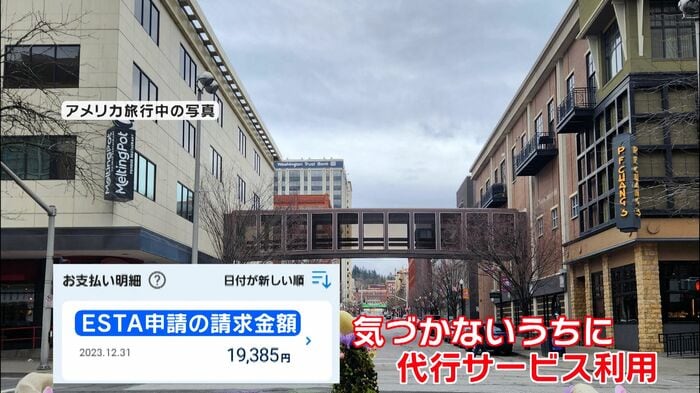 ESTA申請にかかる費用は、アメリカ政府の公式サイトから自分で行うと21ドル(約3100円)なのです。しかし、トラブルに遭ったという女性を取材すると、アメリカ政府の公式サイトから申請するよりも約1万6000円も高い、約1万9000円を請求されたといいます。