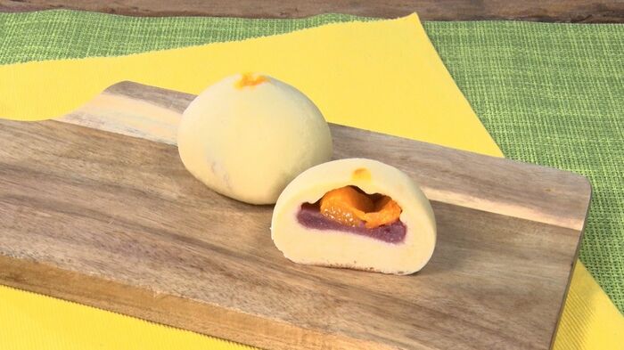 もちもちのベーグル生地で、こしあんとフレッシュなみかんを包んだフルーツ大福のようなベーグル。