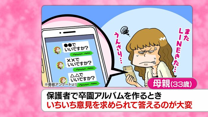 「卒業アルバムを保護者が作るのだが、いちいち意見を求められて面倒」というエピソードでは、「卒業アルバムでは、全員が同じ枚数掲載されていなければいけないのか?」という問題でスタジオが大盛りあがり。
