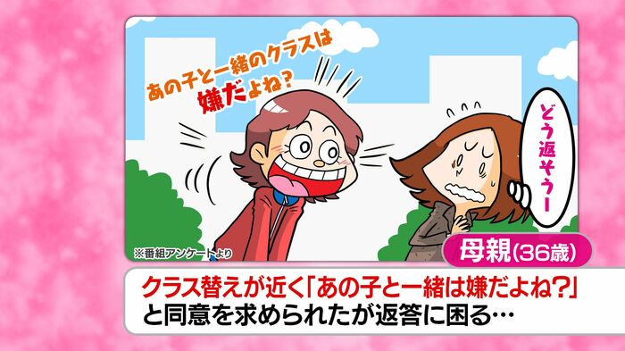 「クラス替え前に『あの子と一緒はイヤだよね』とママ友に言われ、返答に困った」というエピソードでは、まだ子どもの小さい横澤さんが「そういう人は私のことも何か言っているのだろうから、関わらないようにしたい」と主張しましたが…。