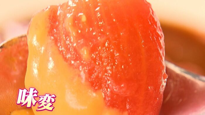 カルデラに見立てたくぼみにあるのは、チーズソースをかけた湯むきトマト。