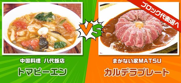 視聴者投票の結果は「トマピーエン」33% 対「カルデラプレート」67%。熊本県の新ご当地グルメは、「まかない家MATSU」さんの「カルデラプレート」に決定しました。