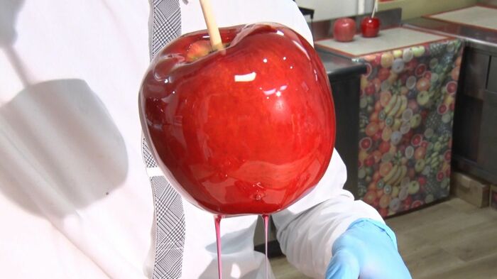 パリパリとした飴の食感と、ジューシーなりんごの食感を同時に楽しめます。