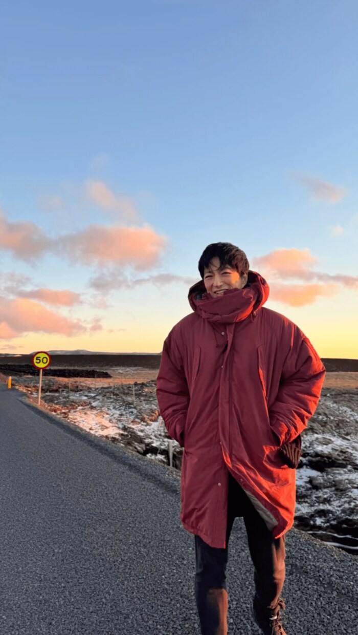また、11月27日にはアイスランドの国旗の絵文字とともに、地面が雪一色の場所で撮影した横顔姿を披露。黒のダウンを羽織り、イヤーカフ付きニット帽をかぶった、完璧な防寒スタイルになっています。