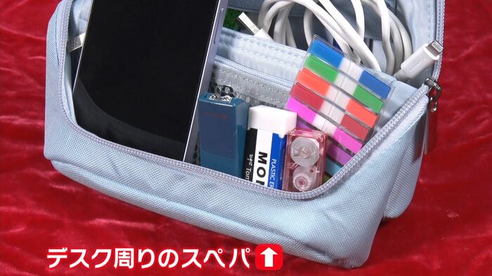 複数のペンや付箋、消しゴムだけでなく、スマホや化粧品もまとめて収納できるということで、デスク周りの“スペパ”が向上します。