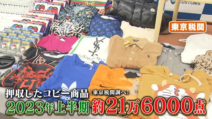 多くは海外から違法に輸入されたもので、去年の上半期に東京税関が押収したコピー商品の数は約21万6000点。これは過去最多の数です。