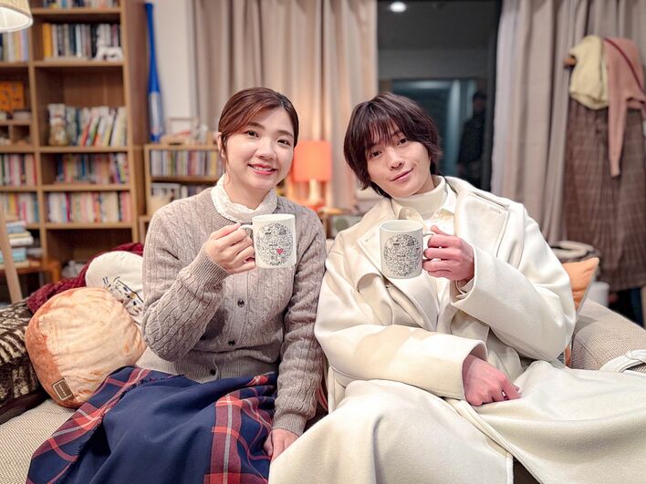 2人の手元にはペアカップが!先日放送された第6話では、ラストで綾子が「幽霊でもいいから私のそばにいてほしい!」と山田に告白し、お互い見つめ合うシーンが登場。ネット上でも多くの反響が寄せられ、2人の距離がグッと縮まるのか注目が集まっています。