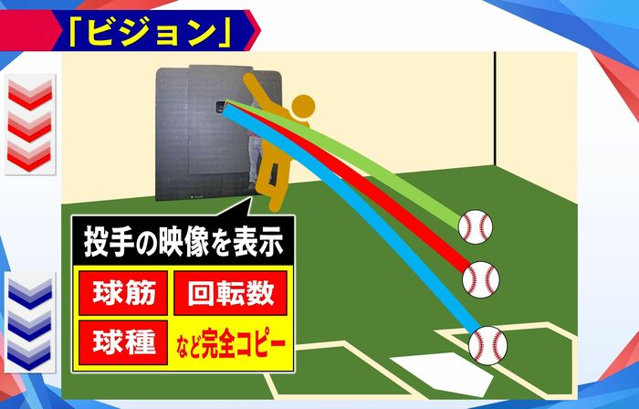 大谷選手は「ビジョン」というトラジェクト社が開発したバッティングマシンを使ったトレーニングも行っています。