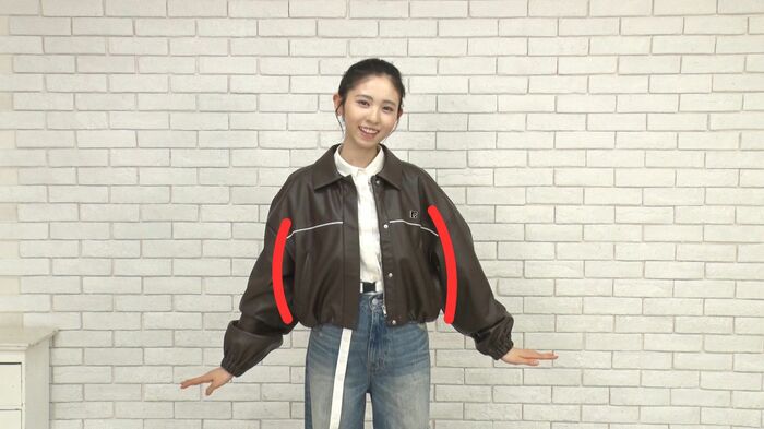 袖周りに余裕のあるゆったりスタイルなので、大きめのシャツに重ね着しても相性抜群!
