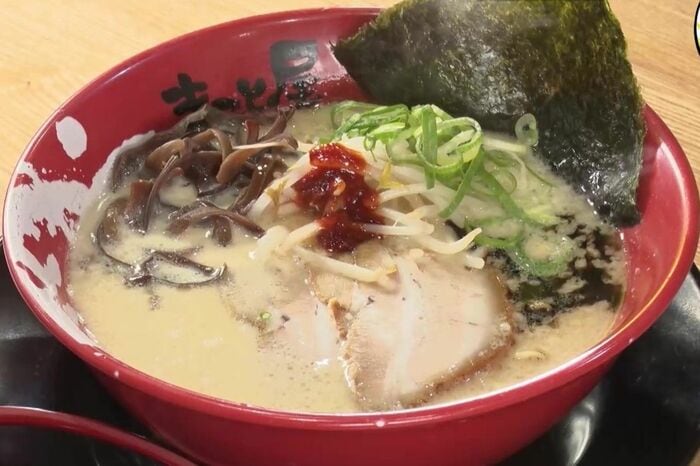 大人気の牛白湯ラーメンは、偶然誕生。スタジオに登場した専務取締役・宮平幸太さんは「僕らの創業者が、もともと牛丼屋さんで働いていて、牛骨を仕入れるルートがあったんです。そこで牛骨でスープを出してみたところ、正直牛骨ってスープが出にくくて…。しかも、素人集団だったんですけど、本当にたまたまうまいことスープが出て、それが僕らの看板になりました」と明かします。