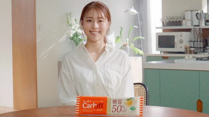 糖質50%オフとは思えないおいしさに思わず笑みがこぼれる表情に注目です。