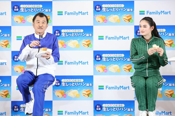 吉田鋼太郎さんと八木莉可子さんが、2月26日に行われたファミリーマート「生しっとりパン発表会」に出席しました。