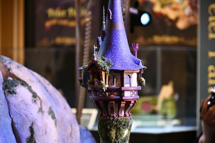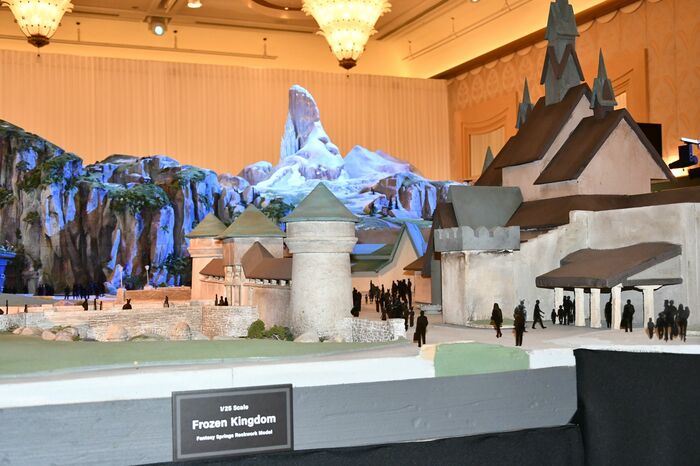塔の上にラプンツェルの姿 『アナ雪』の氷の宮殿も1/25で再現