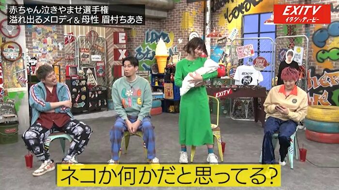 「種類?」と周囲からツッコまれつつ、にこやかに「人だよね~人なのかな~♪」と揺れながらメロディを口ずさむ眉村さんでしたが、一向に赤ちゃん人形は泣きやみません。