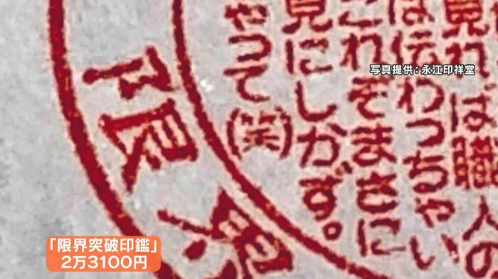 取材すると、特に難しかった文字は『聞』と『(笑)』の文字だということで、その名も『限界突破印鑑』。
