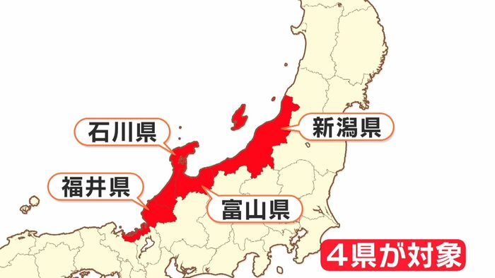 対象となるのは石川県・富山県・福井県・新潟県