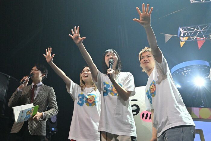 ここで「30周年フェス」の定番イベントになった“観客の皆さん全員とのめざましじゃんけん大会”を開催。最後の1人が勝ち残るまで続くというもので、MAZZELとSHISHAMO、そしてHYの新里英之さん(Vo&Gt)、名嘉俊さん(Dr)が加わり対決を行いました。ちいかわとハチワレもステージにかけつけます。